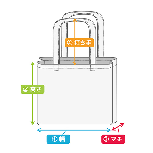 「マチ」とは、バッグの底や側面に幅を持たせた部分で、収納力と自立性を左右する重要な構造要素です。例えば、マチが広いバッグは容量が増え、大きな書類や厚手の衣類も収納しやすくなります。さらに、マチがあることでバッグは自立しやすくなり、荷物の出し入れも快適になるのが利点です。バッグのサイズ表記は一般的に「横幅(W)×高さ(H)×奥行き(D)」で示されます。この表記によって、バッグの実際の使用感や収納能力を予測することが可能です。奥行き(D)はバッグの前後の厚みを示す寸法で、マチのサイズ感や収納力の目安となる要素です。特にノベルティとして配布する場合は、実用性を重視した選定が求められます。