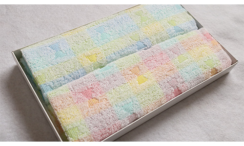 約9〜10×20〜25cm前後のコンパクトなサイズ。長方形のかたちをしており、ポケットや小さなバッグにもかさばりにくくすっぽり収まり、持ち運びに便利です。日常の手拭きや汗拭きとしても役立ち、デザインの良さからノベルティとしても人気があります。ちょっとした外出時にも役立つアイテムです。②ミニタオル