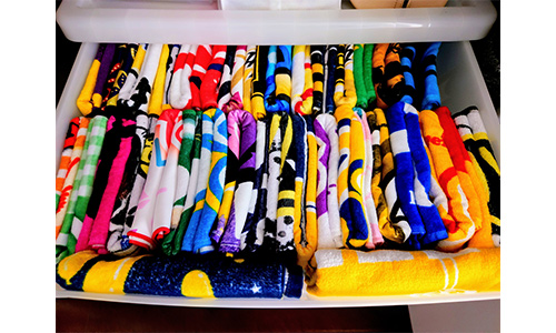 収納性を重視するなら、厚みや畳んだときの体積を意識しましょう。特にオフィスの販促担当者やノベルティ用途では、限られたスペースに多数並べられるコンパクトさが求められます。さらに、タオルにロゴやメッセージを印刷・刺繍する場合、印刷エリアが確保できるサイズと、印刷機器への対応性の両方を満たすものを選ぶことで、デザイン性と実用性を両立できます。名入れの仕上がりや効率まで見据えたサイズ検討が成功の鍵になります。