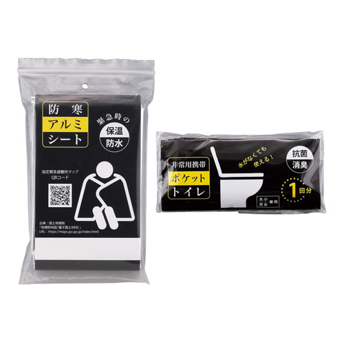 スペック:備考:セット内容:非常用携帯ポケットトイレ、アルミブランケット