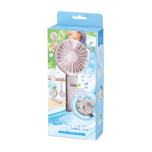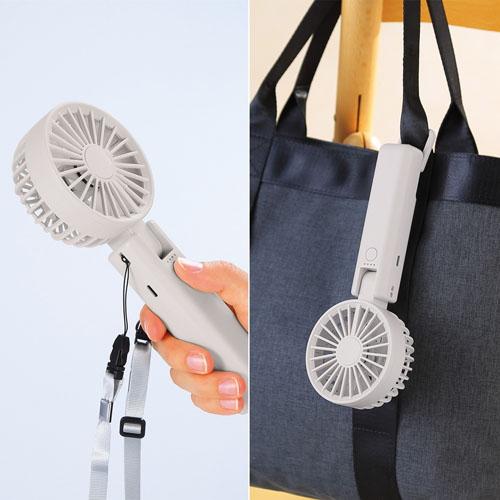 折りたたみ式2WAYダブルファン(カラビナ付き)(アイスグレー) 261622