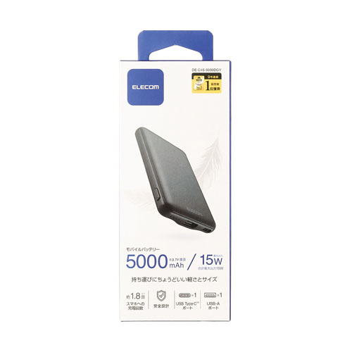 エレコム・モバイルバッテリーDE-C45-5000(カラー) 261582