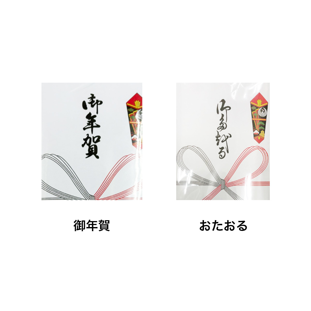 熨斗は「御年賀」または「おたおる」をご選択いただけるので、お渡しするシチュエーションに合わせて選択が可能です。
