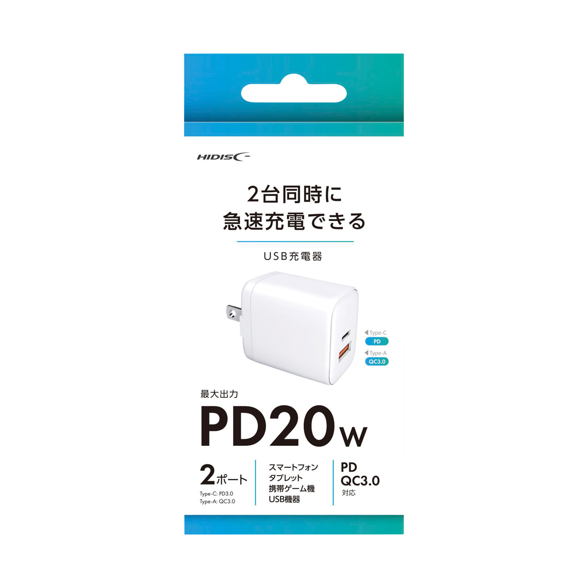 PD(USB Power Delivery)対応で高速充電可能。