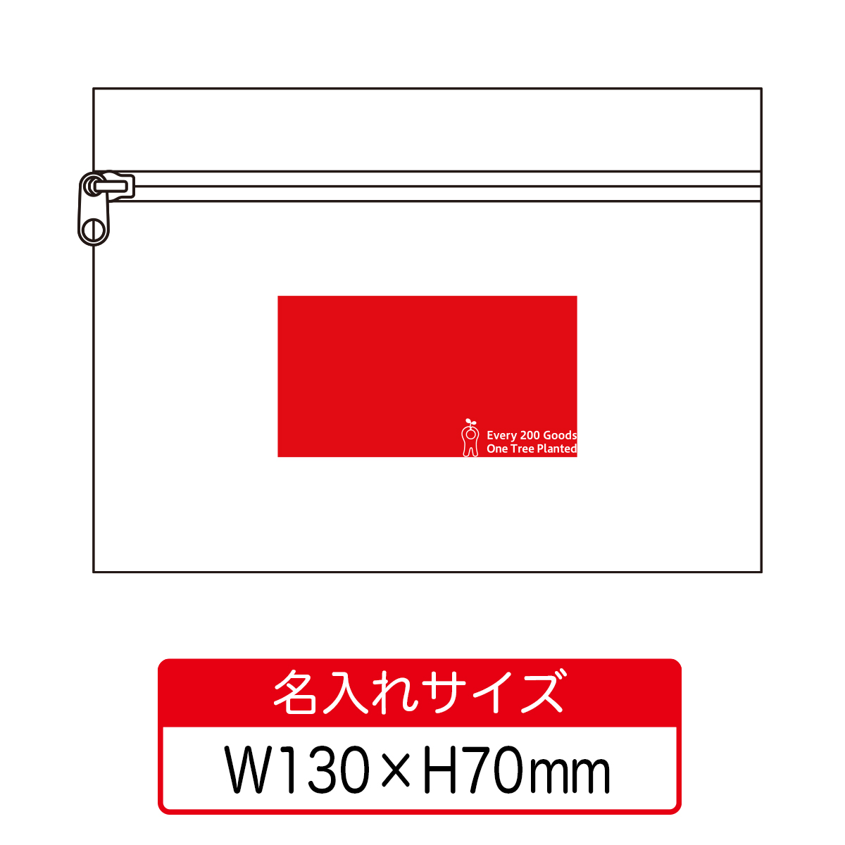 ポーチ片面下方に植樹プログラムのロゴマークが入ります。