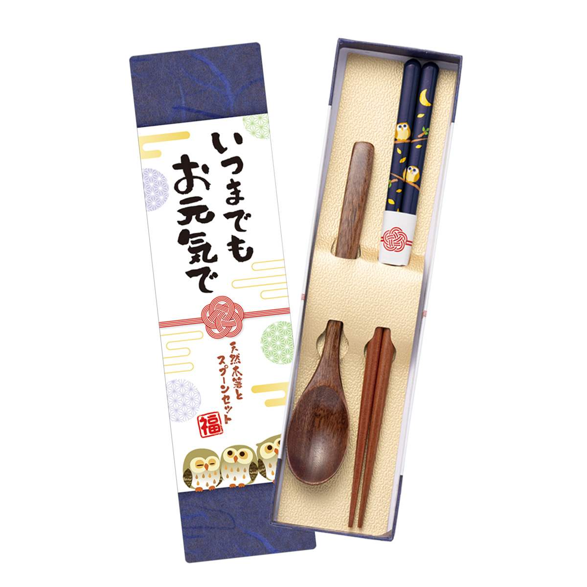いつまでもお元気で 天然木箸とスプーンセット 251101