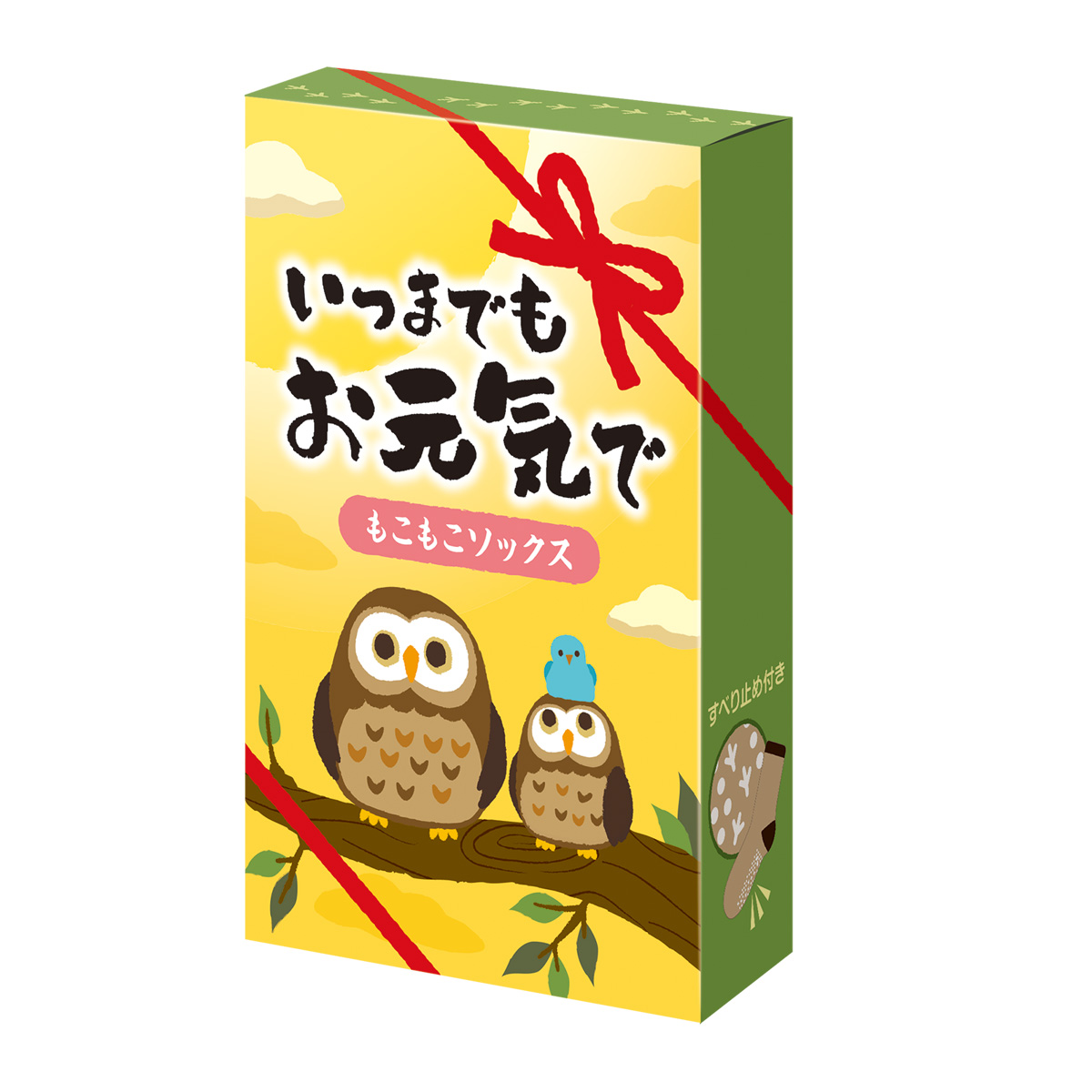 カワイイふくろうと「いつまでもお元気で」というメッセージがデザインされており、