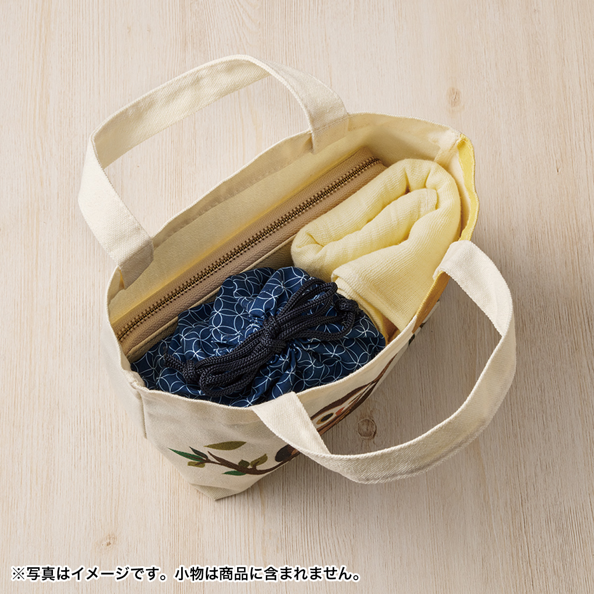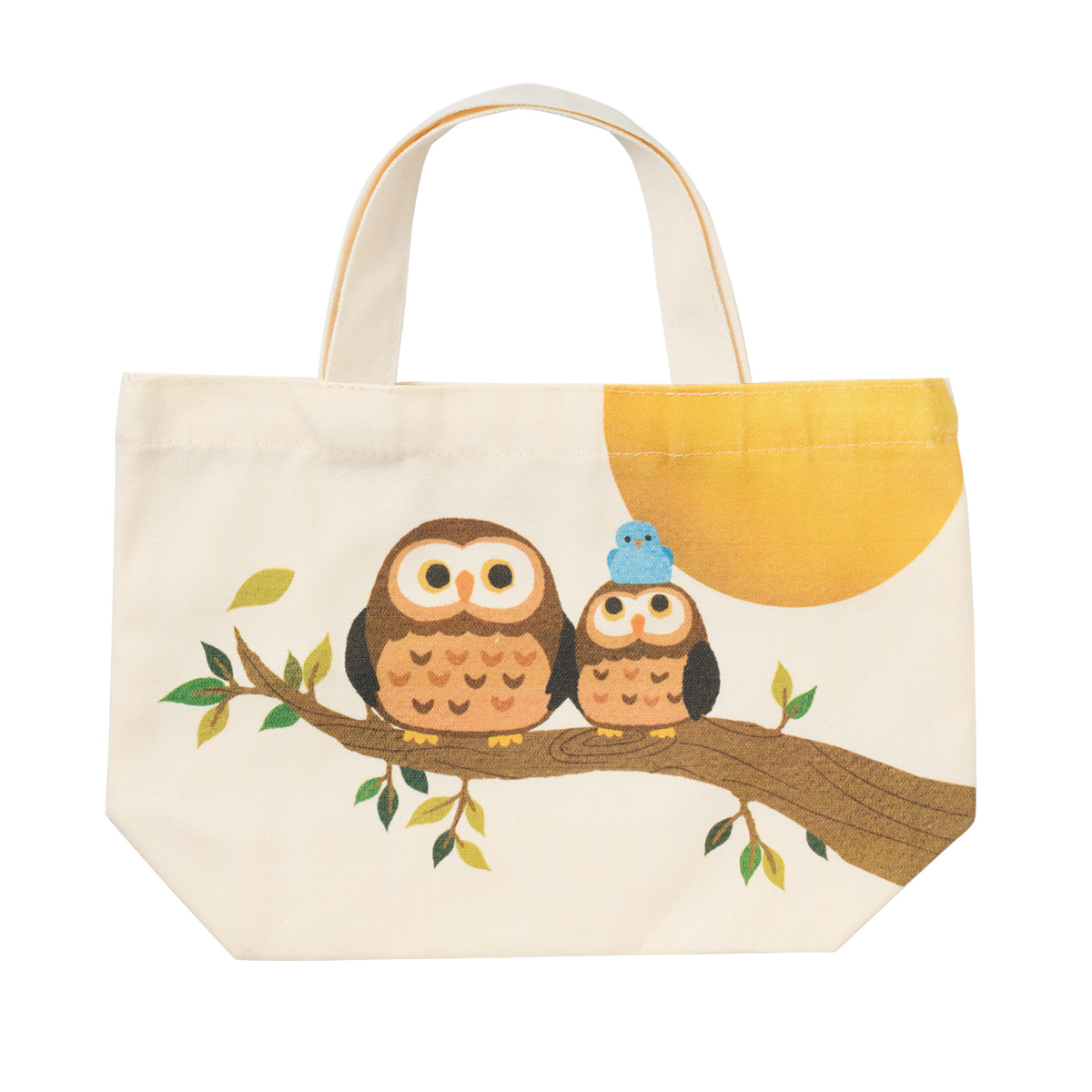 バッグ本体にデザインされたかわいい「ふくろう」がしっかり正面に登場いたします。