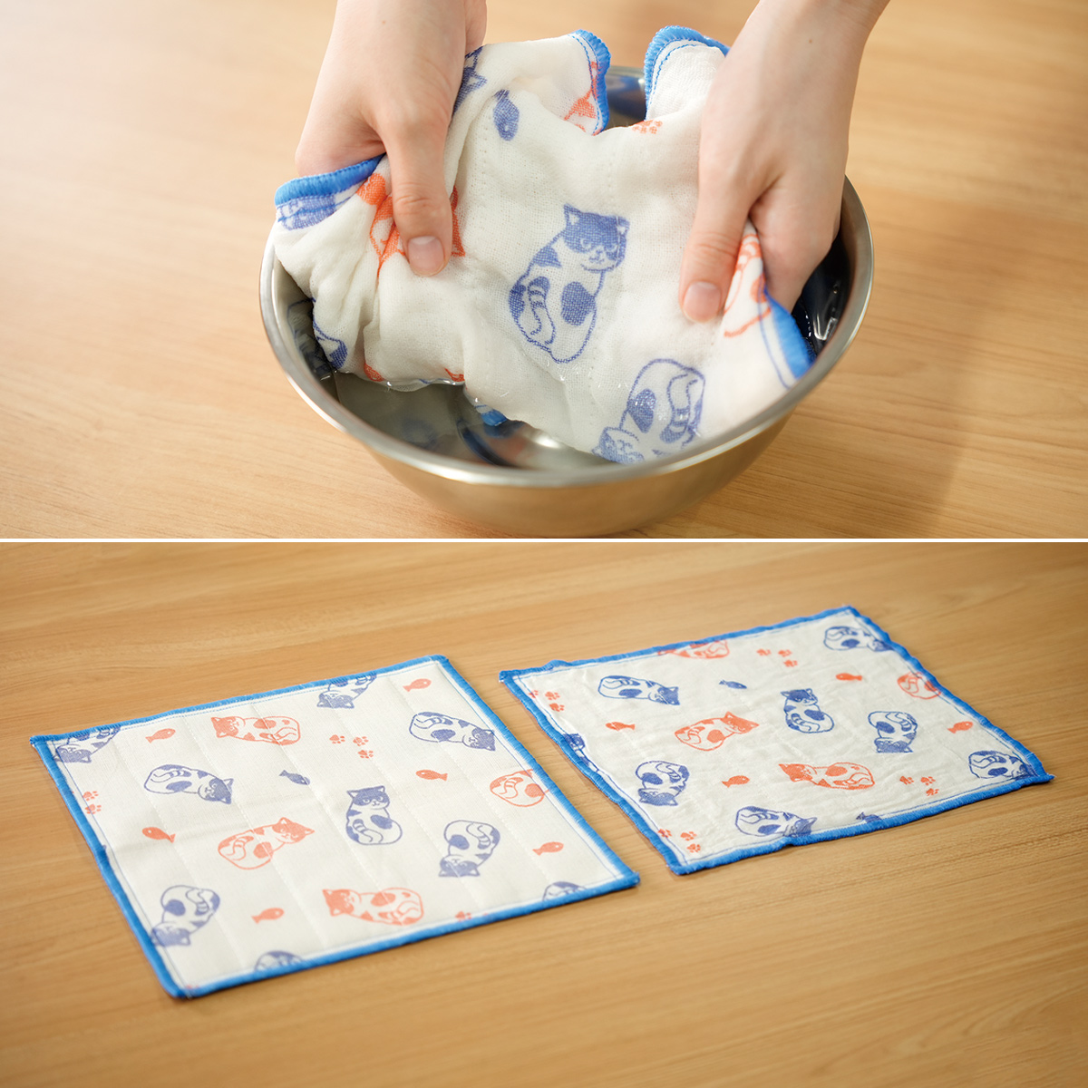 使い始めはぬるま湯でよく洗い、糊を落としてからご使用ください。