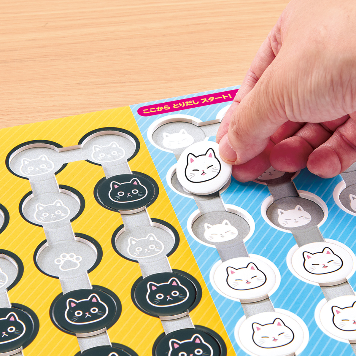 コマは【くろねこ】と【しろねこ】のかわいいデザインで、子どもが喜ぶこと間違いなし。