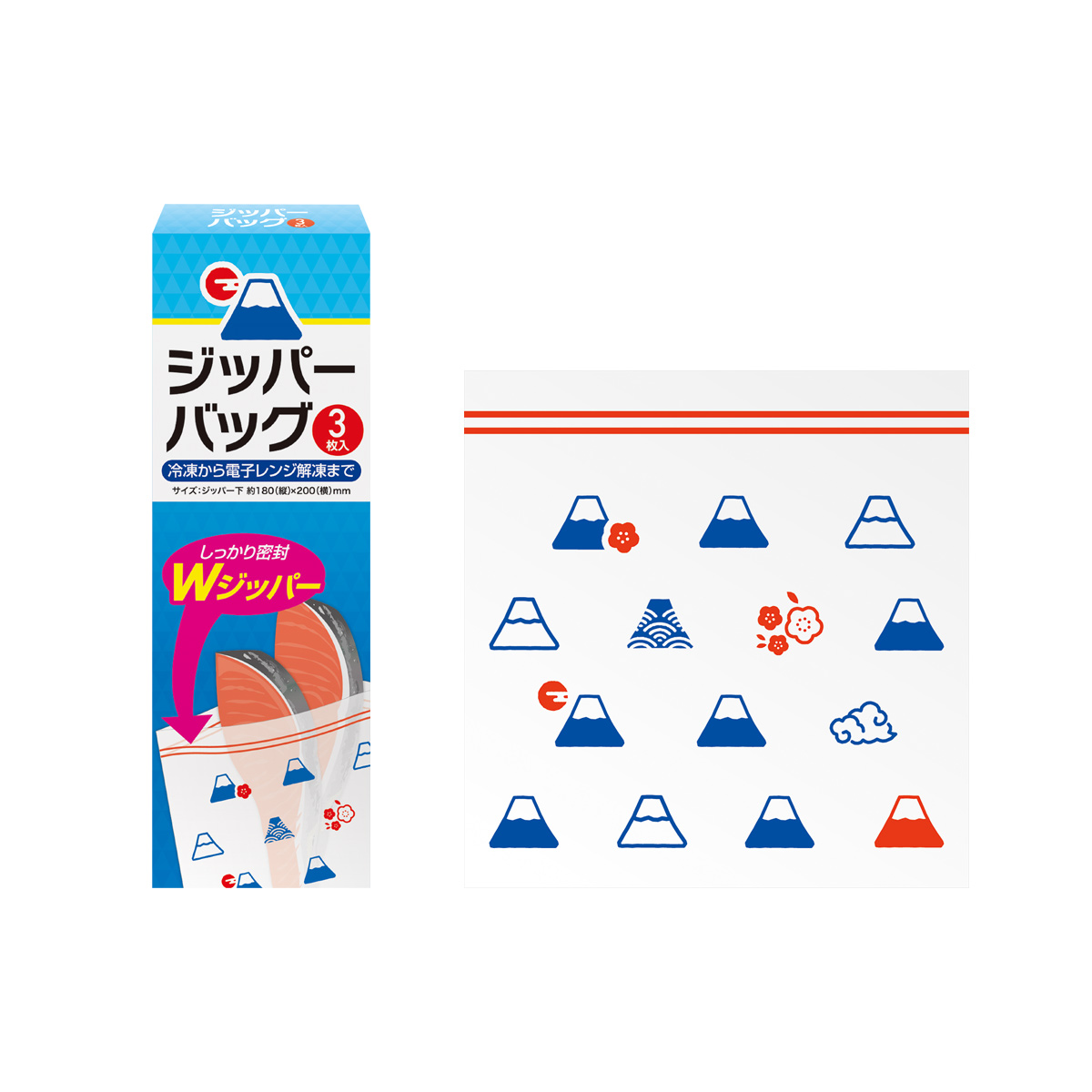 富士山デザインのジッパーバッグはWジッパー仕様で汁モレも安心。