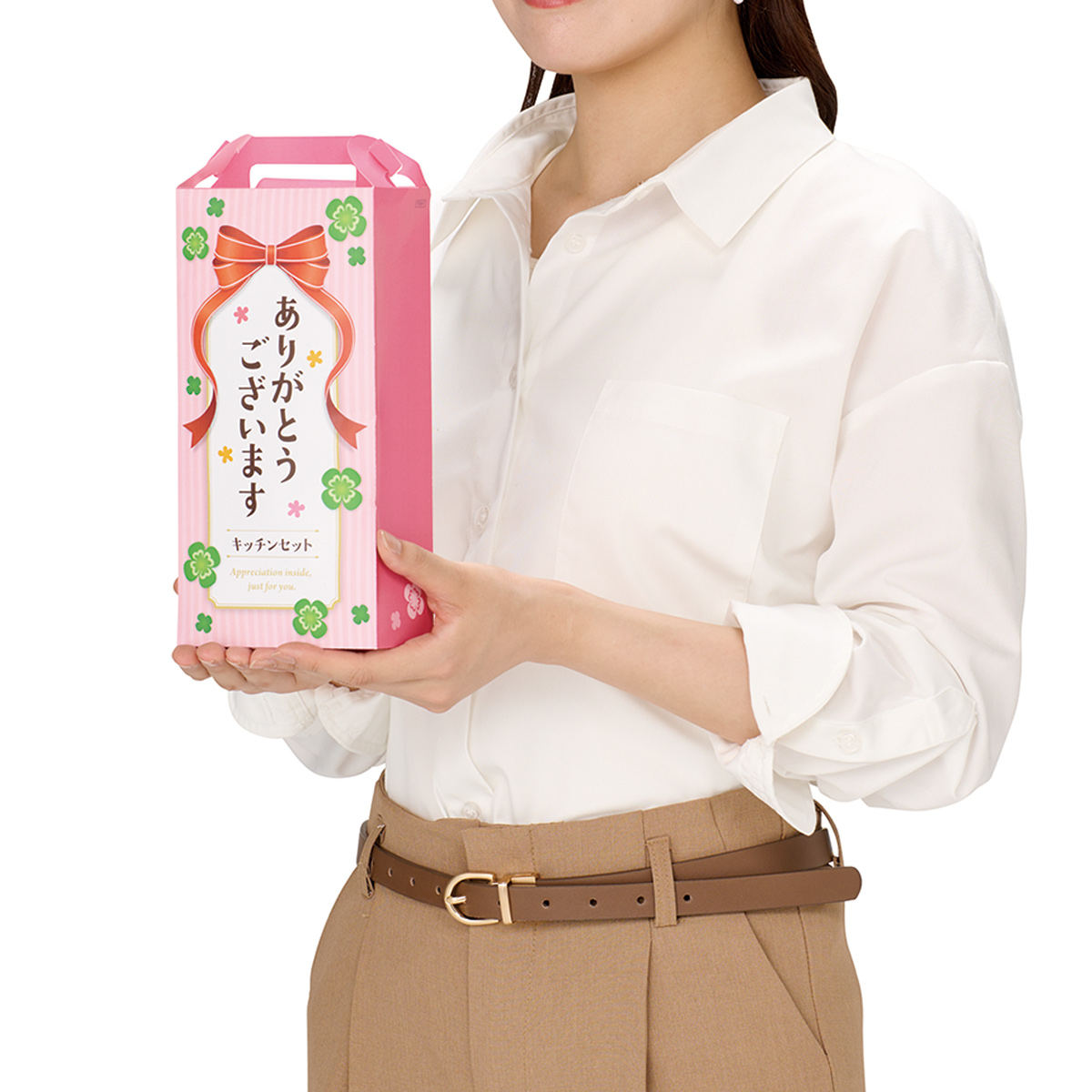 持ち手付きのパッケージなので、そのままお渡ししやすく、持ち帰りも安心です。