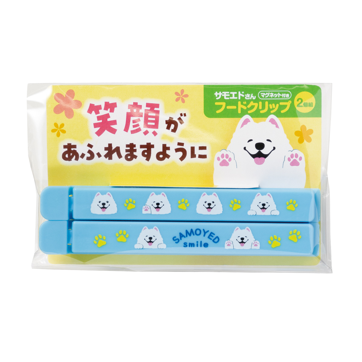 笑顔があふれますように サモエドさんマグネット付きフードクリップ(2個組) 0253501