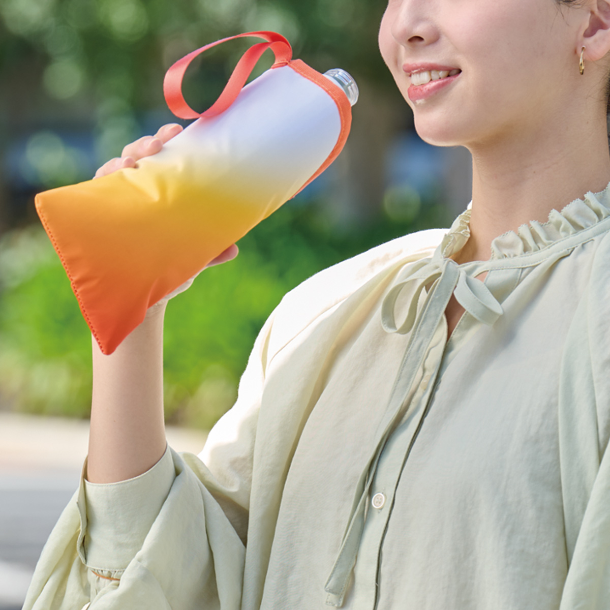 ポーチに入れたまま飲める構造のため、移動中の水分補給がしやすく、暑い季節の熱中症対策としても取り入れやすいアイテムです。