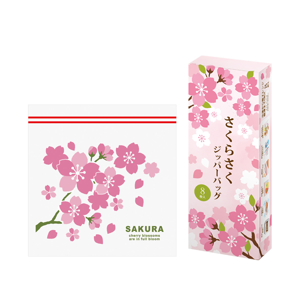 桜デザインのWジッパー仕様で汁モレしにくく、冷凍保存からレンジ解凍まで対応。