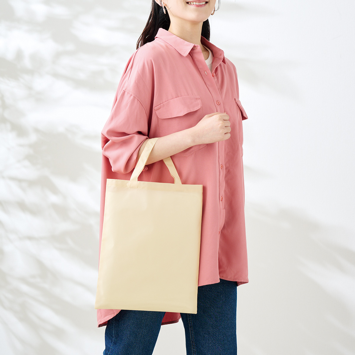 薄手でマチのない軽量タイプのため、かさばりにくく持ち運びもスムーズ。