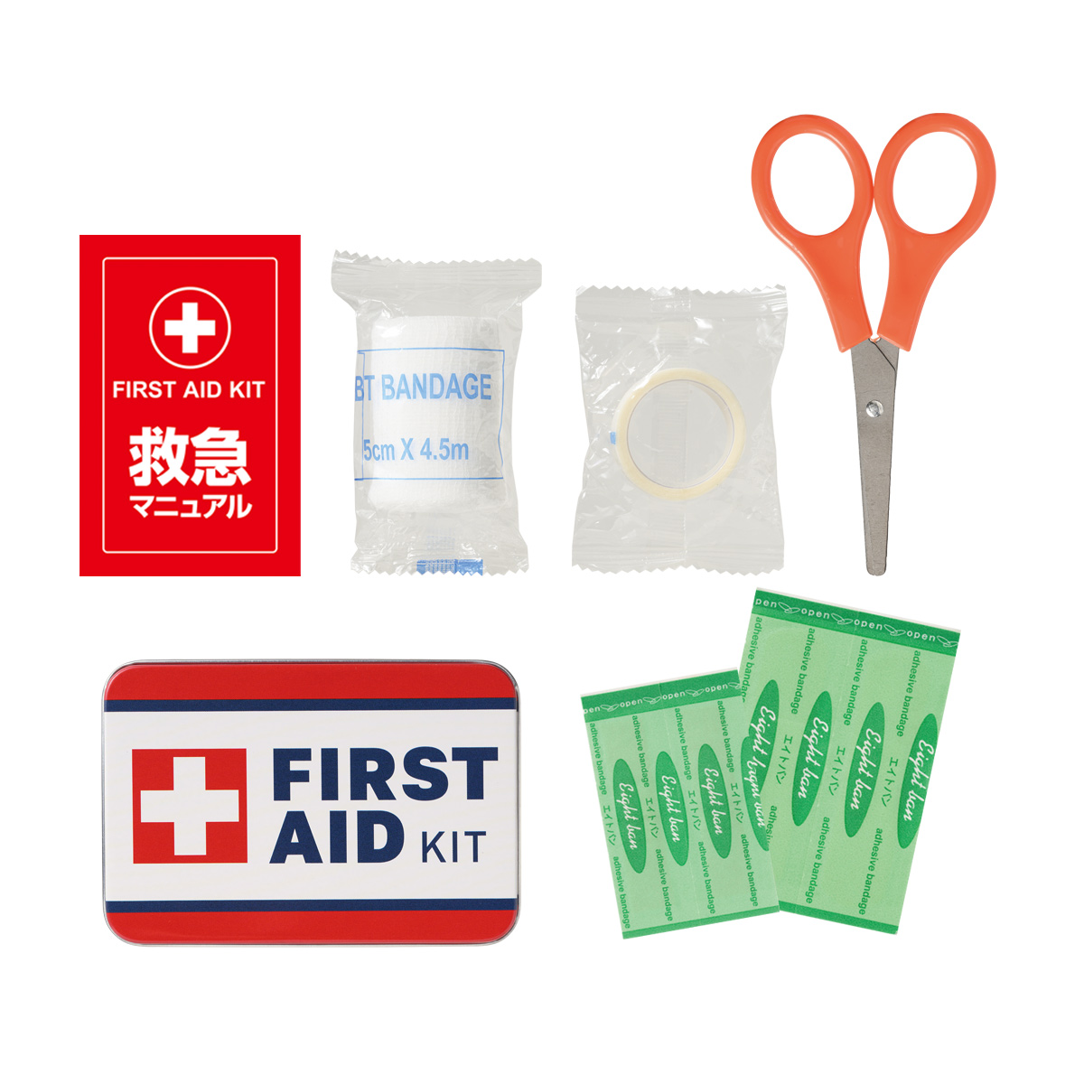 小さな缶の中に基本的な応急用品をしっかりと備えており、いざという場面でも役立ちます。
