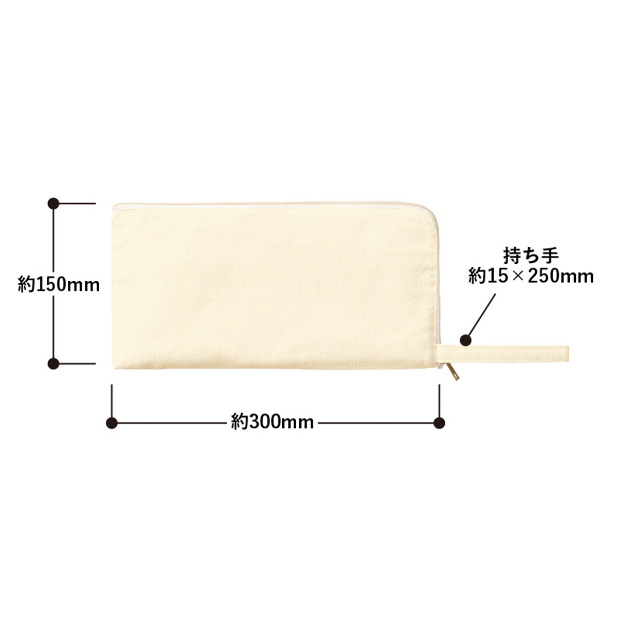 キャンバスL字ファスナーフラットポーチ(M) ナチュラル TP-0008-008