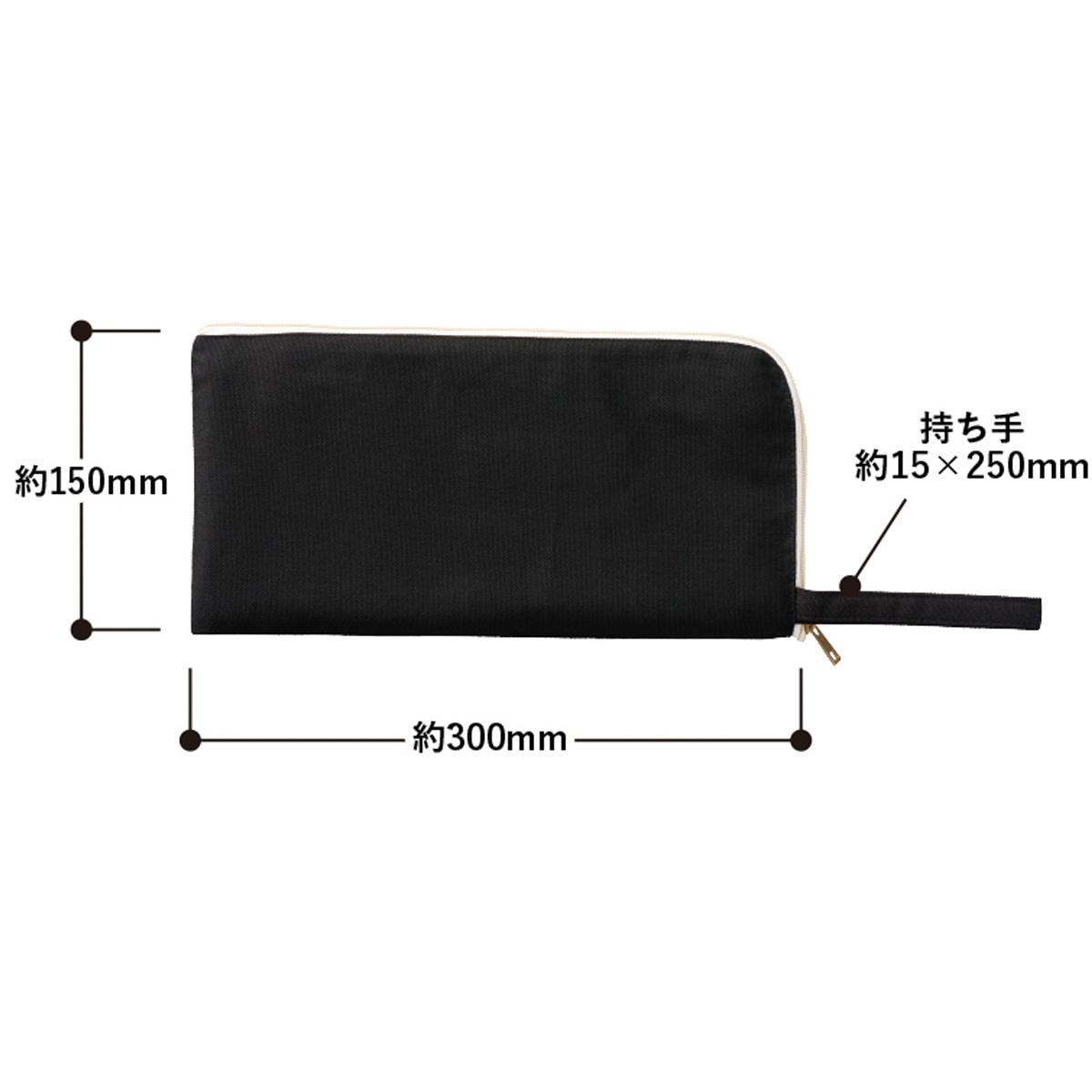 ファスナーはL字に開くため物の出し入れがしやすく、ストラップ付なので持ち運びにも便利です。