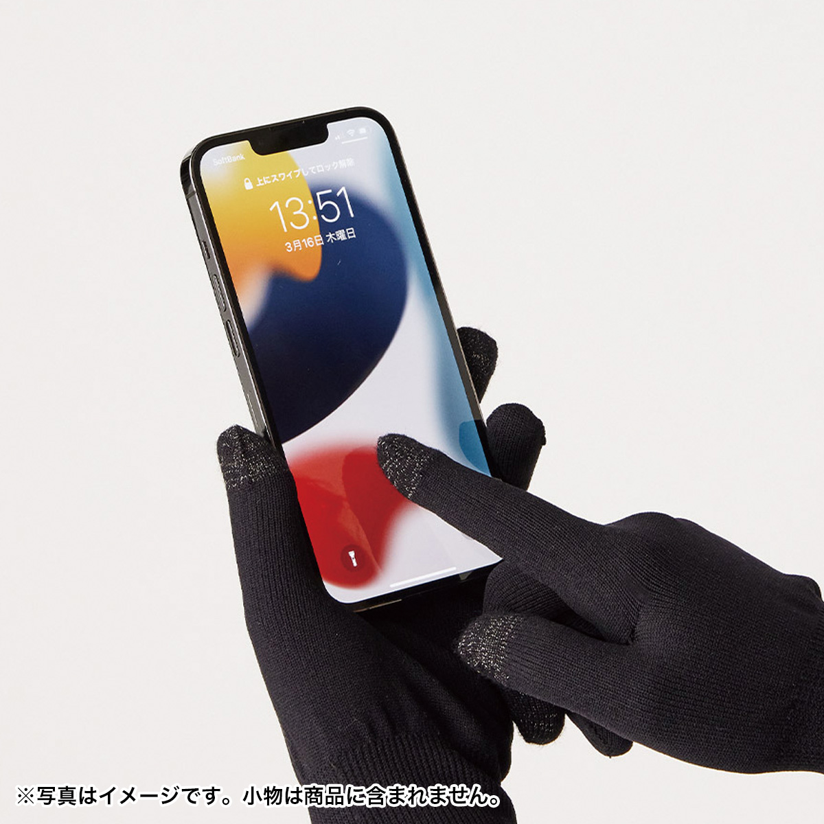 タッチパネルに触れる親指・人差し指・中指の先端に導電繊維が入っていますので、操作もしやすいです。
