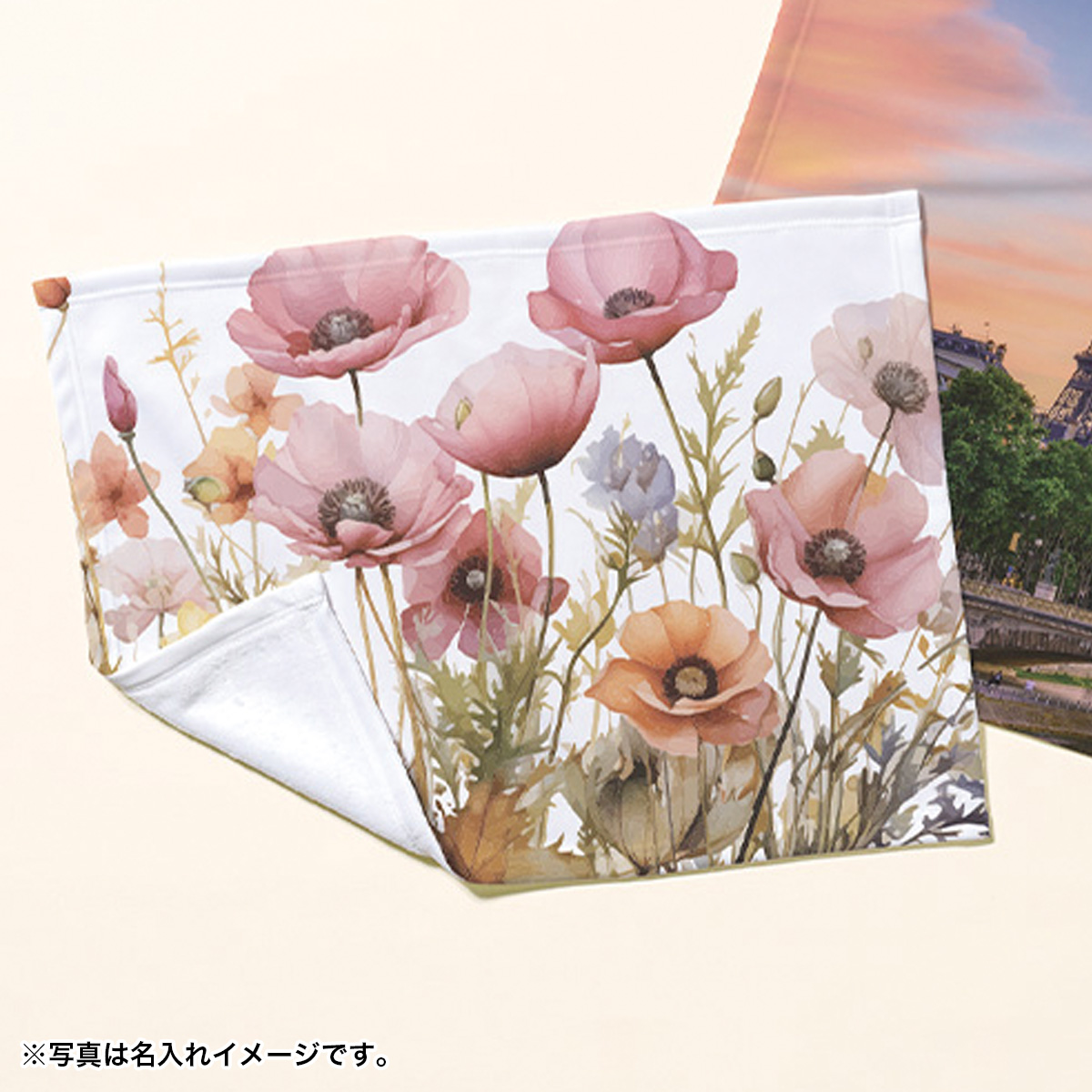 当店にて、商品画像に名入れ用データをレイアウトした名入れイメージ画像を作成いたします。
