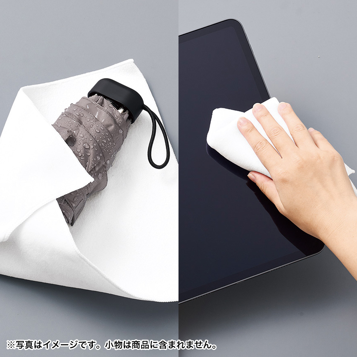 内側の生地は吸水力に優れており、折りたたみ傘やペットボトルを包めば