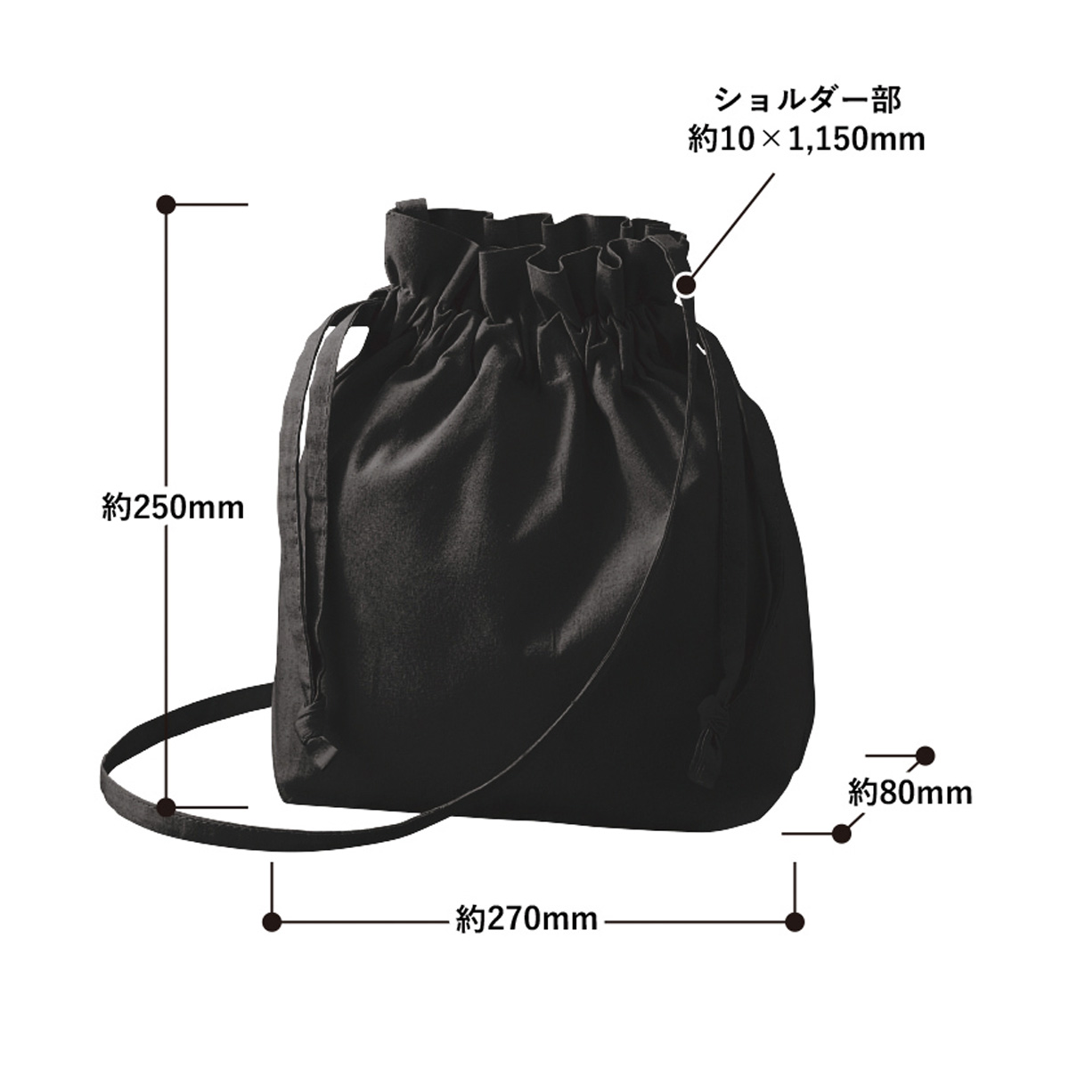オーガニック厚手コットン巾着ショルダーバッグ ブラック TR-1300-009