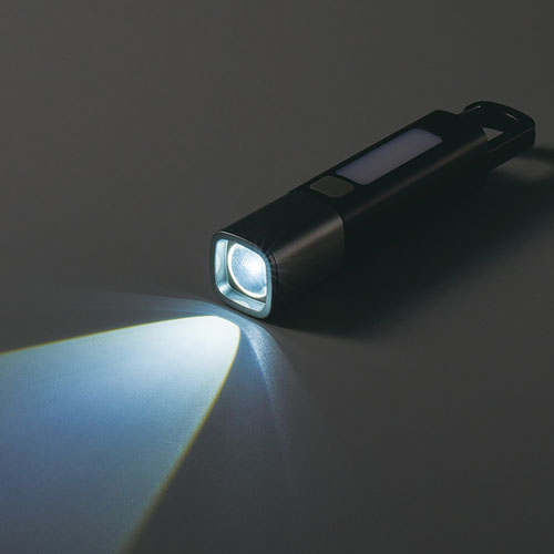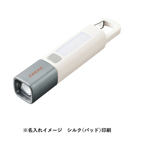 ボタンを1回押すとハンディライトが点灯、もう一度押すと点滅、