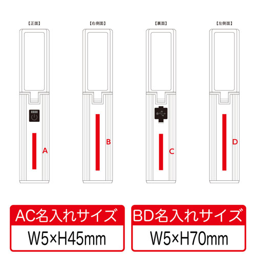 正面、側面(左右)、裏面に単色印刷またはフルカラー印刷が可能で、