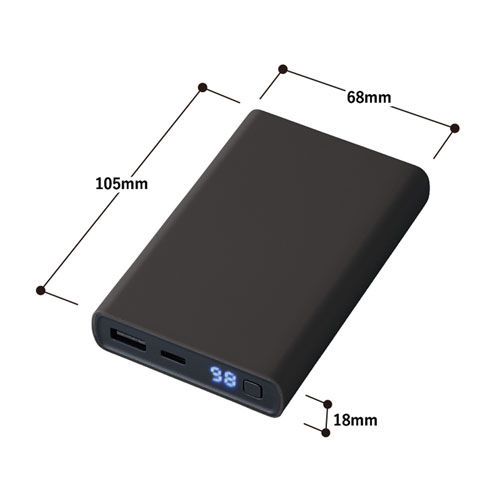 備考:取説付、最大出力2.1A、バッテリー容量10000mAh、本体重量約178g、Type-Cケーブル付属、デジタル表示機能付き
