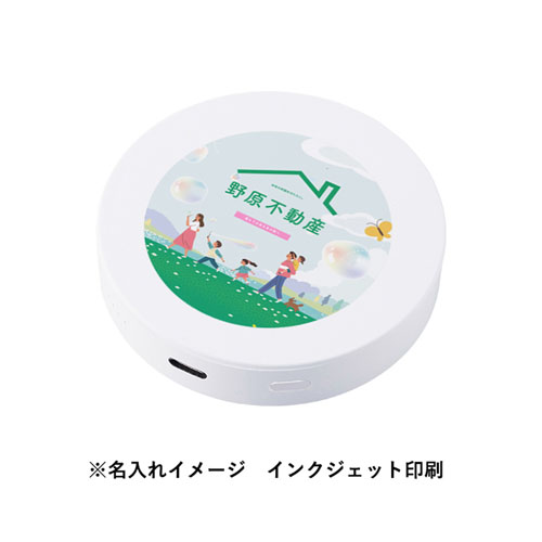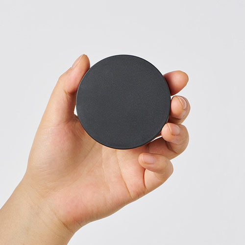 2500mAhのめずらしい容量サイズと、ころんとした円形フォルムがポイントです。