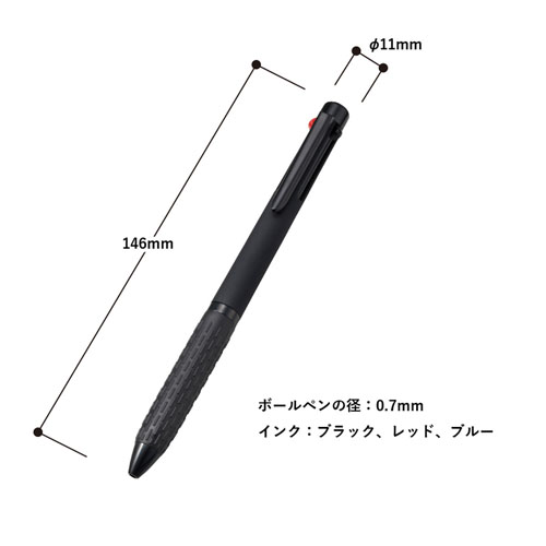 ペン先のカラーは使用頻度の高いブラック・レッド・ブルーの3色です。